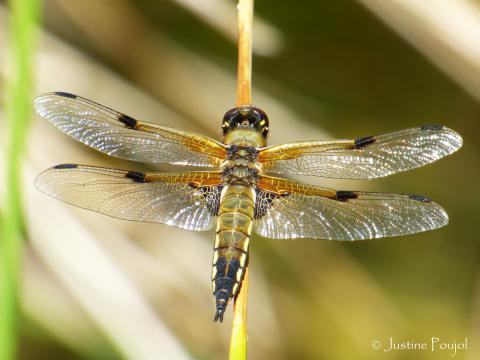 | Présentes sur presque tout le globe, nous sommes de grandes voyageuses et nous pouvons parcourir jusqu’à plusieurs milliers de kilomètres. Des littoraux aux déserts, des basses plaines aux hautes-montagnes, nous colonisons des habitats très variés à condition qu’un élément soit présent, au moins temporairement : l’eau. Nous, Libellules et Demoiselles, sommes intimement liées à cette ressource. Si il est vrai qu’une fois adulte, l’espace aérien est notre territoire, notre descendance est quant à elle inféodée aux mares, ruisseaux, rivières et autres points d’eau. En effet, une fois sortie de l’œuf, nos larves adoptent une vie aquatique au cours de laquelle elles prédateront les autres larves d’insectes, les têtards et les petits crustacés afin d’assouvir leur féroce appétit. |